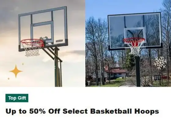 Hurry in & save! Shop in store and get up to 50% off select basketball hoops.