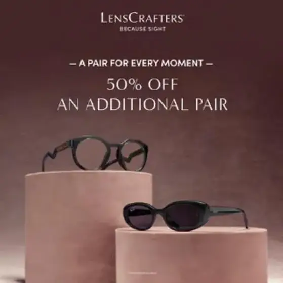 Find the perfect pairs for every moment! Get 50% off an additional pair at LensCrafters.